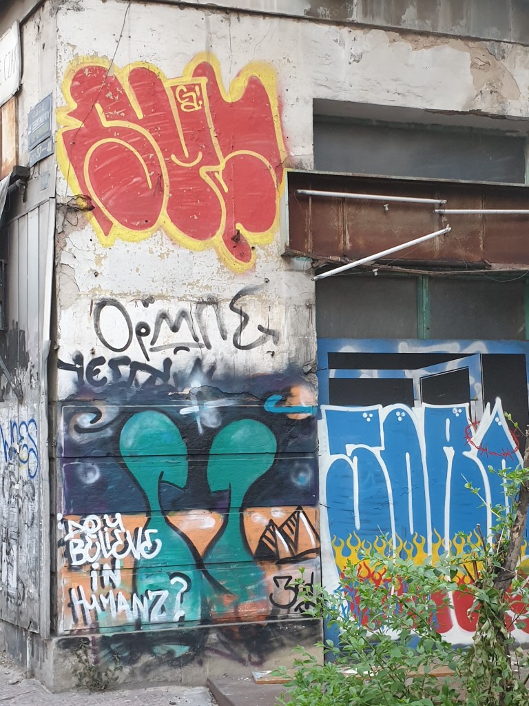 When I visited Greece just before the pandemic the everyday use of symbols I usually associate with science gave me a feeling of slight disjuncture; even the graffiti could look like a psychedelic maths equation. The inscription in one of my favourite photos taken in Athens starts with omicron. To date I have not worked out its meaning, so I do hope it is appropriate for public dissemination: